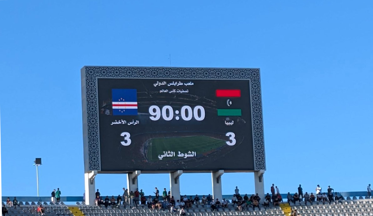 A seleção nacional de futebol arrancou um empate por 3×3 contra a Líbia no Estádio Internacional de Trípoli, após estar a perder por 3×1 até o terceiro quarto da partida. Nesta altura, Cabo Verde ganhou fulgor e, por três vezes, esteve com o golo da vitória no pé. A qualificação dos Tubarões Azuis fica assim adiada para o Estádio Nacional, na próxima segunda-feira, 13, contra Eswatini.