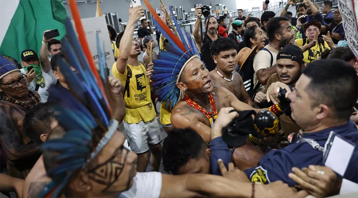 Mais de 300 ativistas, incluindo indígenas que participavam de um protesto, arrombaram a porta da Blue Zona, na cidade amazônica de Belém, local que sedia a Conferência das Nações Unidas sobre Mudanças Climáticas. Uma pessoa ficou ferida.