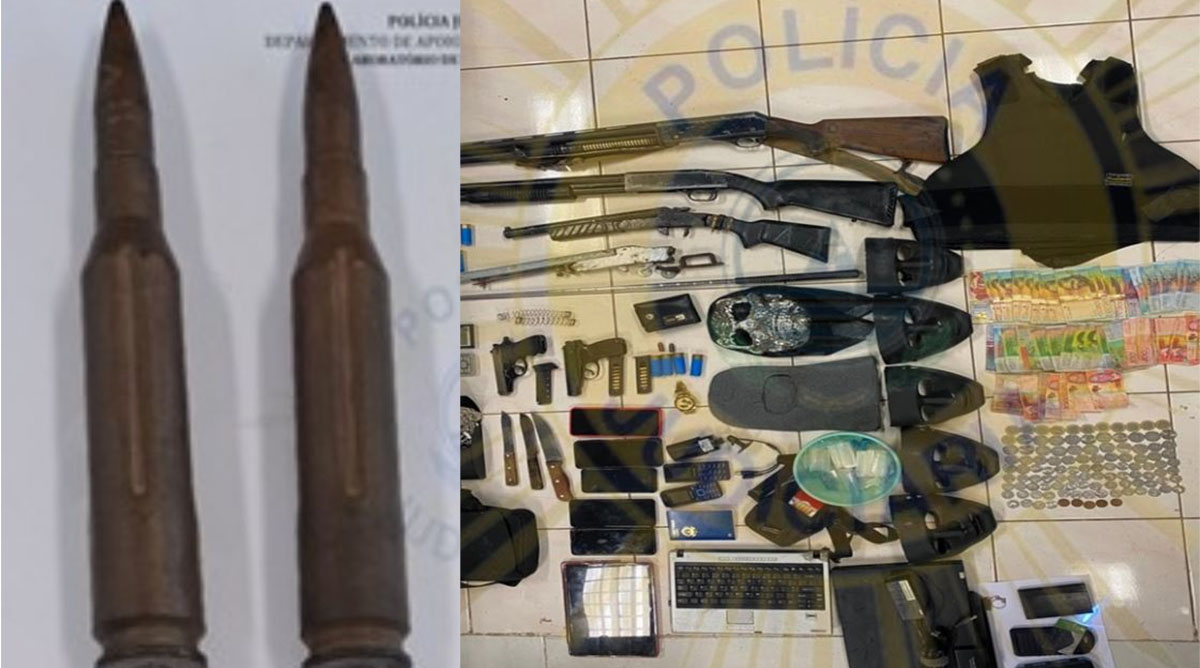 Esta polícia destaca a gravidade da apreensão das munições de calibre 50 mm, utilizadas em armas de guerra do tipo metralhadoras, altamente perfurantes, com alcance de até 6.900 metros e potencial para derrubar helicópteros e aeronaves. Quanto a drogas, foi apreendida uma certa quantidade de cocaína, acondicionada em fragmentos de plástico prontos para comercialização. Submetida a testes laboratoriais, a droga apresentou elevado grau de pureza, suficiente para 110 doses individuais, além de duas balanças de precisão e equipamentos para confecção e acondicionamento de drogas, detalha.