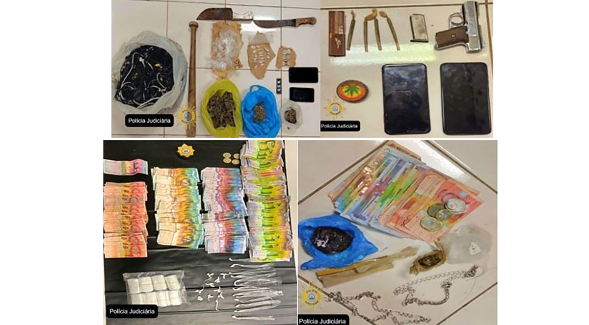 Na posse dos detidos foram apreendidas armas, com destaque para uma pistola calibre 6,35mm, para além de armas brancas, telemóveis, artefactos de prata e equipamentos eletrônicos. E ainda cerca de 300 mil escudos em dinheiro – 289.975 escudos – , entre outros objetos com interesse para a investigação.